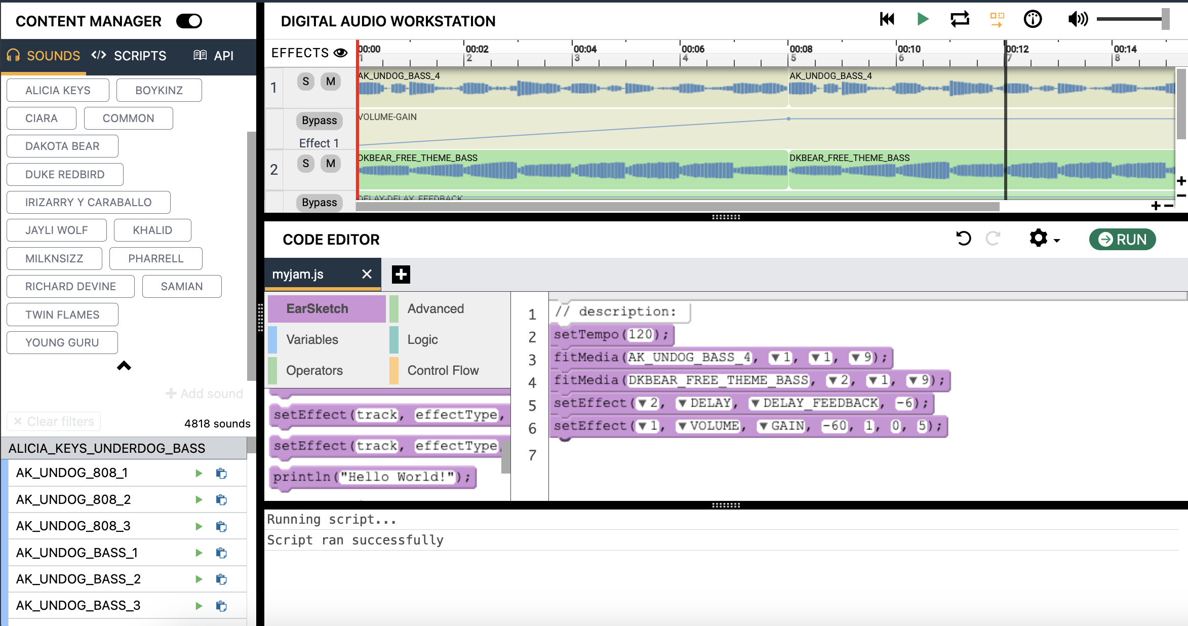 En la actividad 3, usamos la función setEffect para aplicar un efecto a una pista específica durante toda la duración de la canción, pero ¿qué sucede si solo quieres que una sección específica de tu canción tenga un efecto? ¡Usa la función setEffect con más parámetros!