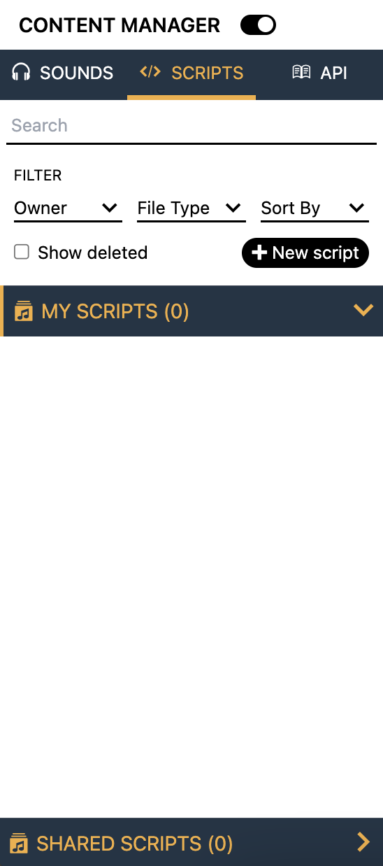 - Ahora, empecemos. Haz clic en el icono Scripts en la barra de menú de la izquierda y selecciona + Nuevo Script.